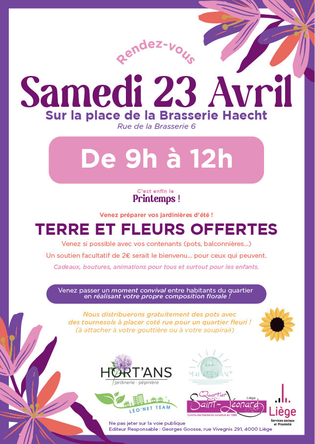 Venez avec votre propre jardinière ou emporter celles qui auront été récupérées pour embellir vos façades dans notre beau quartier Saint-Léonard.